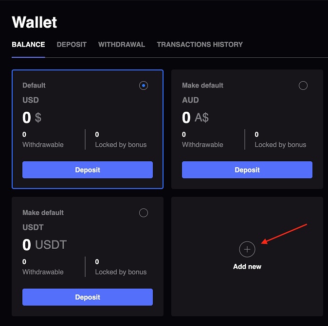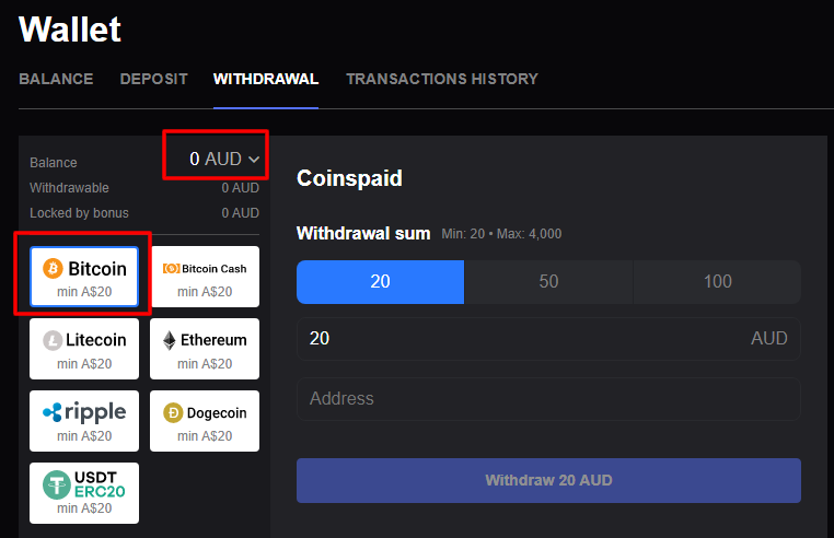 Deposit in BTC ⇒ Get money on AUD balance ⇒ Play with AUD