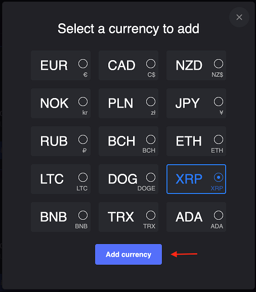 Choose currencies you want to add.